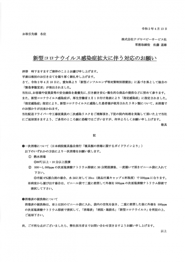 当社は8月15日をもちまして創業60周年を迎えることができました。 これもひとえにお客様をはじめといたしまして、地域の皆様、お取引先様のご愛顧並びに温かいご支援の賜物と心から厚く御礼申し上げます。 これからも社員一同、一層の努力を行い皆様のご愛顧にお応えしていく所存でございます。 今後とも変わらぬご指導、ご鞭撻を賜りますよう宜しくお願い申し上げます。 株式会社ナゴヤベビーサービス社 代表取締役社長 長谷川正親 |